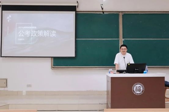 之后他结合福大生源特色和学生职业规划,围绕就业形势、重要资讯、考试要点等对公考政策展开详细分析,帮助同学们了解考公政策的新趋势、把握未来考试的新热点,鼓励同学们制定科学合理的备考计划,努力提升自身能力、稳步推进公考事宜。